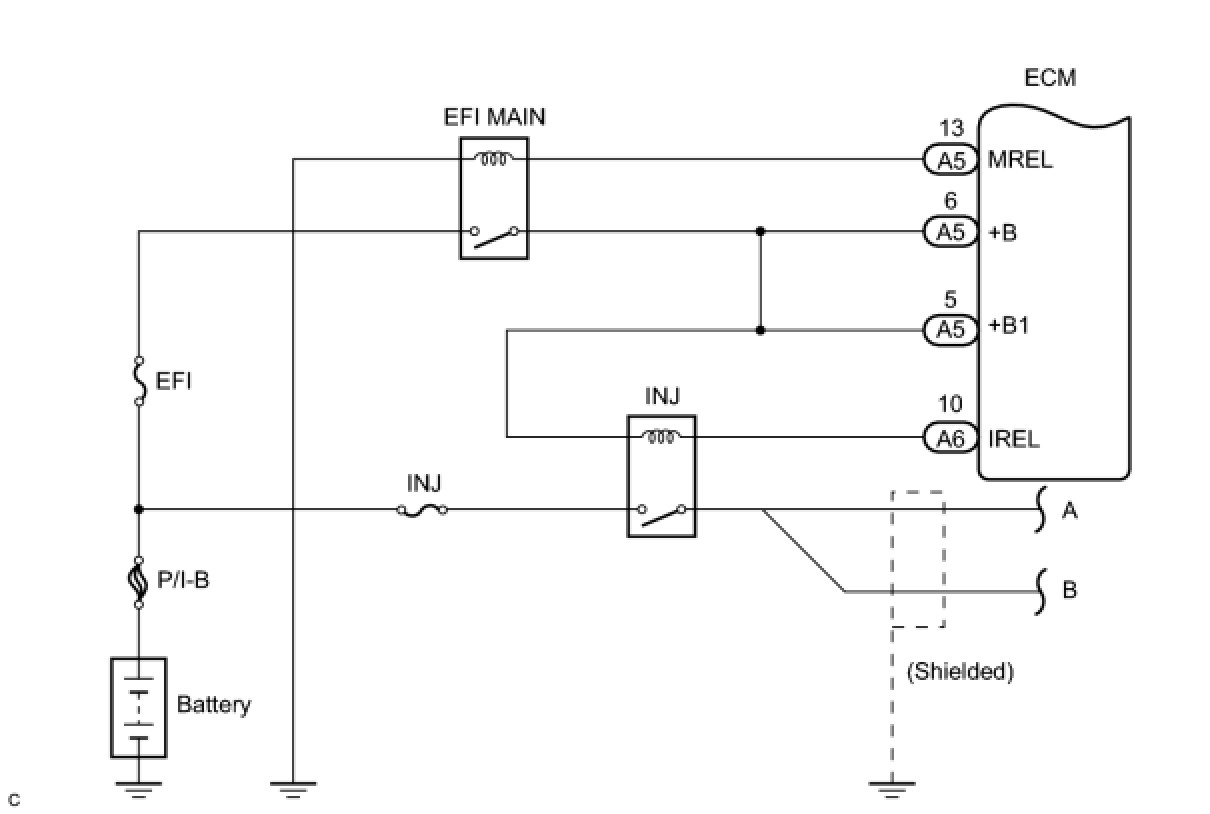 If DTC P062D is stored, current to the INJ relay will be shut off.