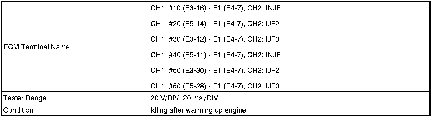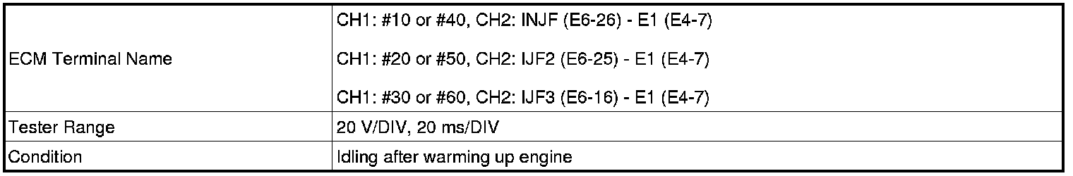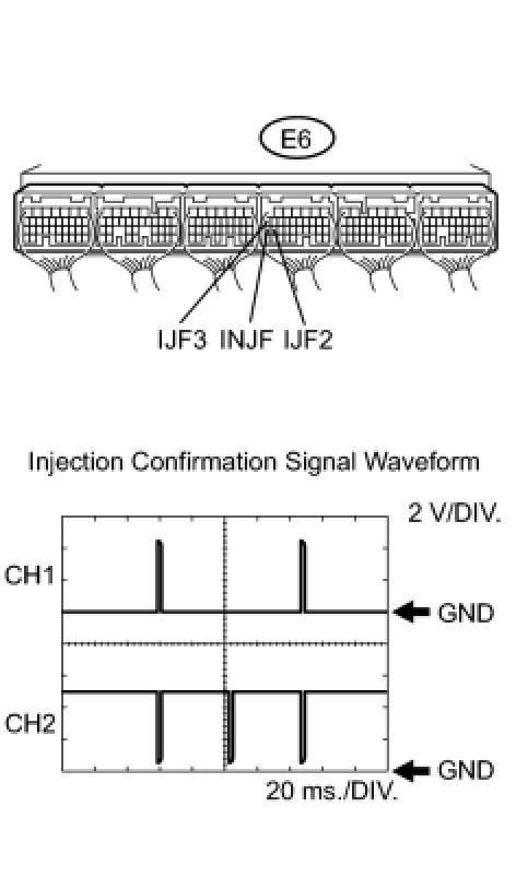 (a) Connect an oscilloscope to terminals INJF, IJF2 and IJF3 of the E6 ECM harness side connectors.