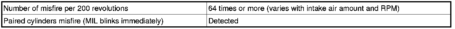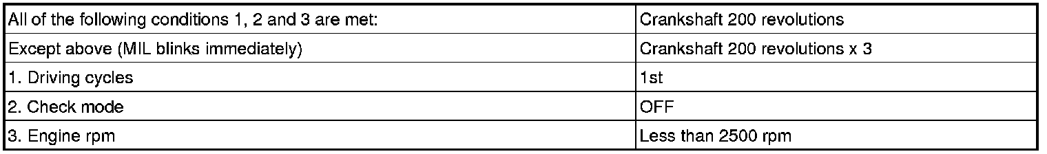 - After the first 1000 crankshaft revolutions, an excessive misfiring rate (approximately 20 to 60 misfires per 1000 crankshaft revolutions) occurs 4 times in sequential crankshaft revolutions.