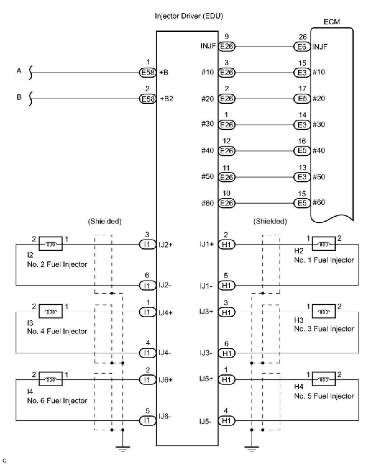 (a) Disconnect the injector connectors, in order to prevent the engine from starting.