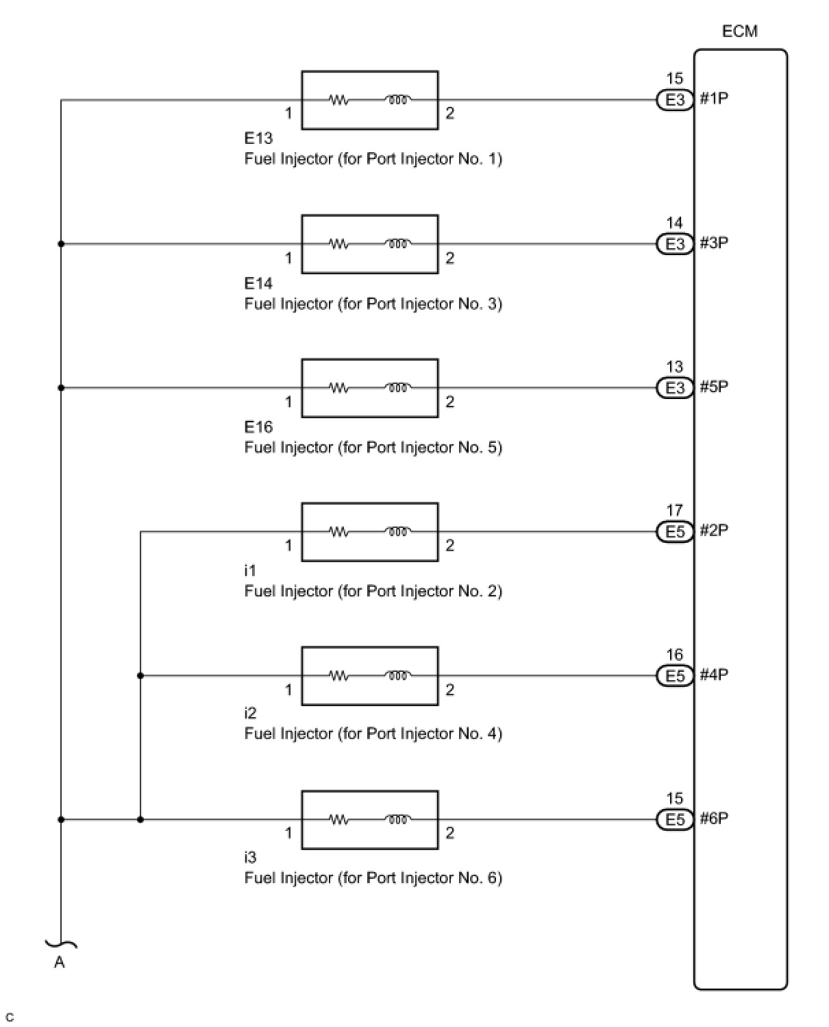 (e) Enter the following menus: Powertrain / Engine and ECT / Active Test / Control the Injection Way / Port. (Procedure "A")