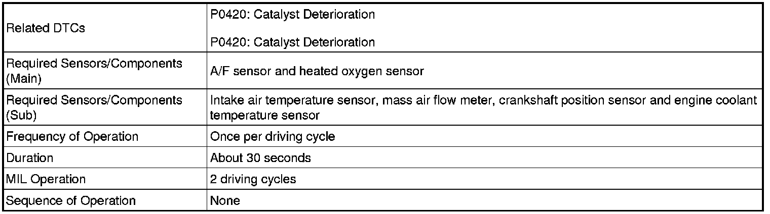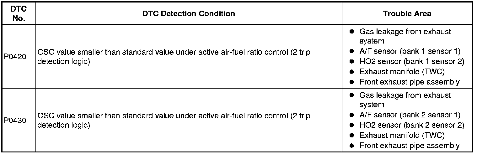 2GR-FSE ENGINE CONTROL SYSTEM: SFI SYSTEM: P0420: Catalyst System Efficiency Below Threshold (Bank 1)