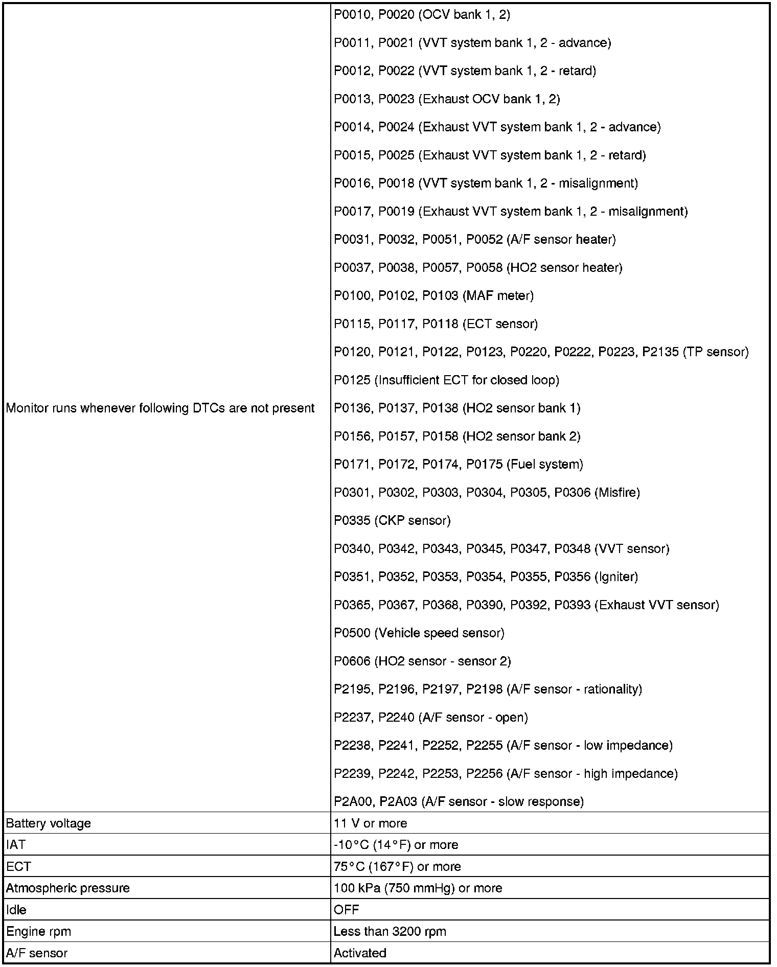 The Air-Fuel Ratio (A/F) sensor has an output delay of a few seconds and the Heated Oxygen (HO2) sensor has a maximum output delay of approximately 20 seconds.