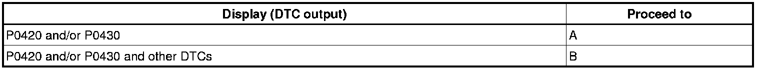 If any DTCs other than P0420 or P0430 are output, troubleshoot those DTCs first.