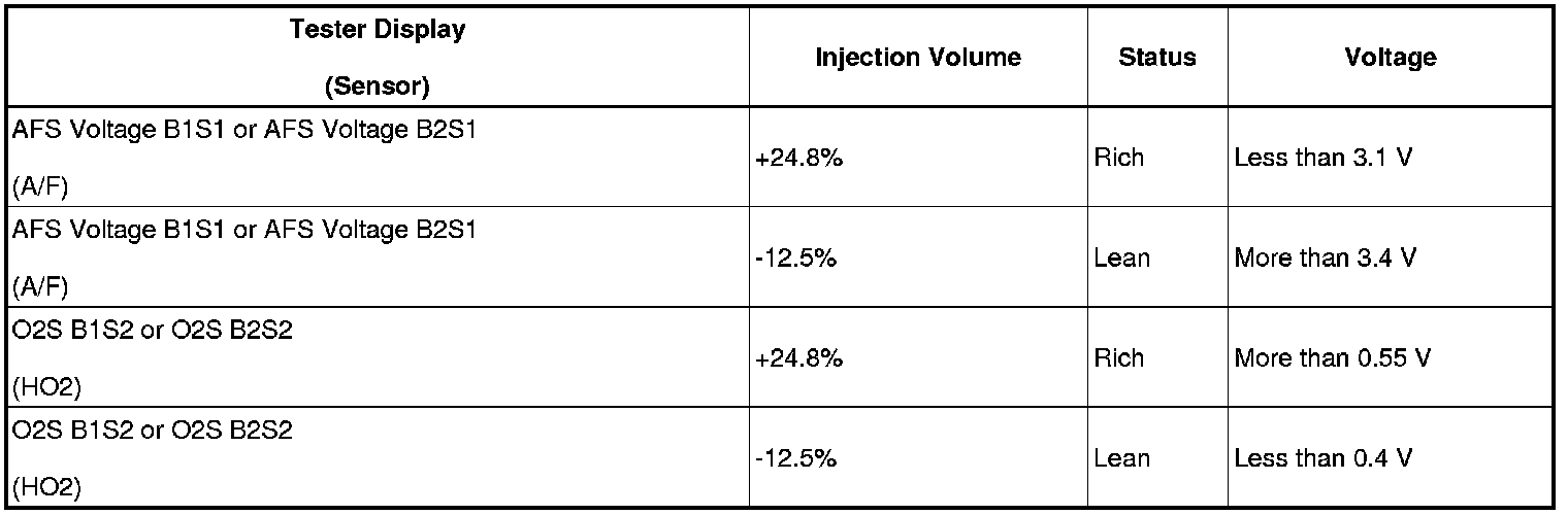 - The Control the Injection Volume for A/F Sensor operation lowers the fuel injection volume by 12.5% or increases the injection volume by 24.8%.