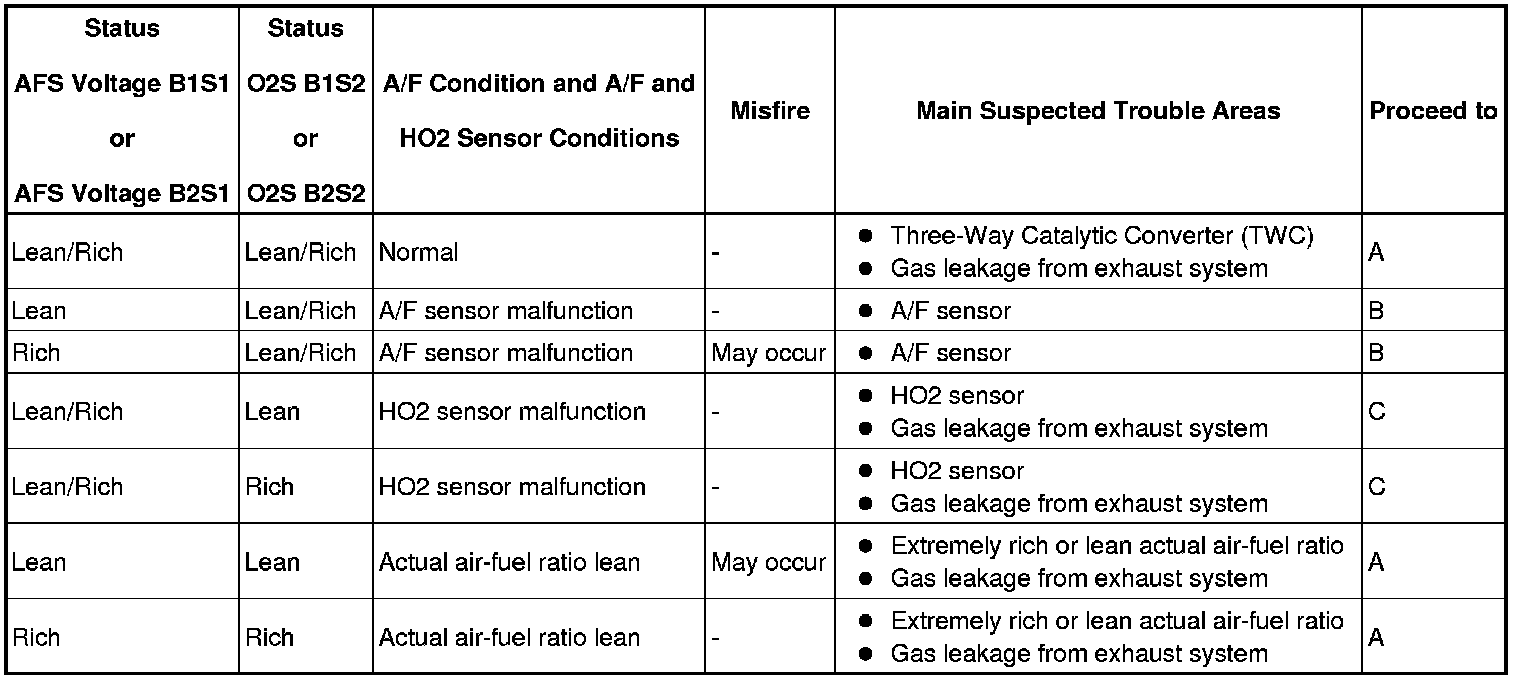 B -- CHECK AND REPLACE AIR FUEL RATIO SENSOR