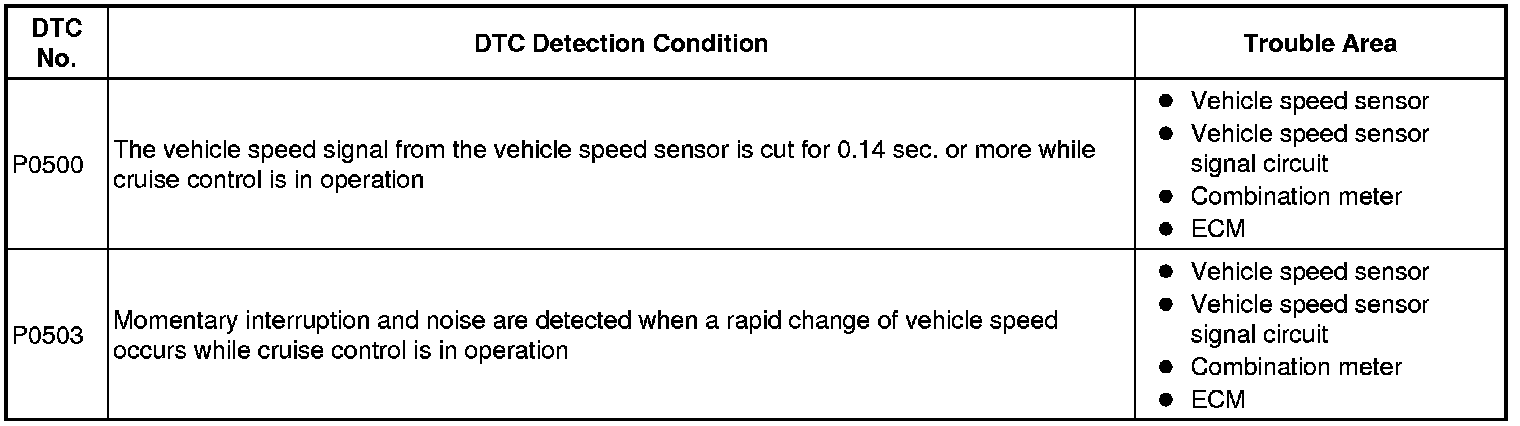 CRUISE CONTROL: CRUISE CONTROL SYSTEM: P0500: Vehicle Speed Sensor Malfunction
