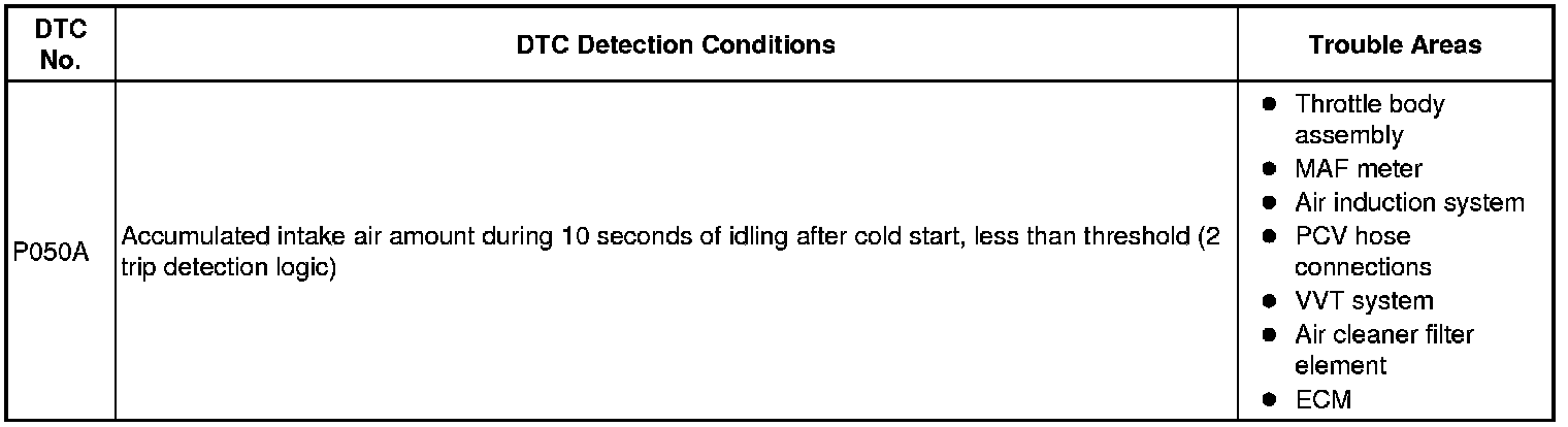DTC P050A - Cold Start Idle Air Control System Performance