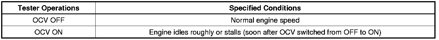 (e) Check the engine speed while operating the Oil Control Valve (OCV) using the tester.