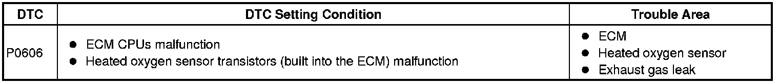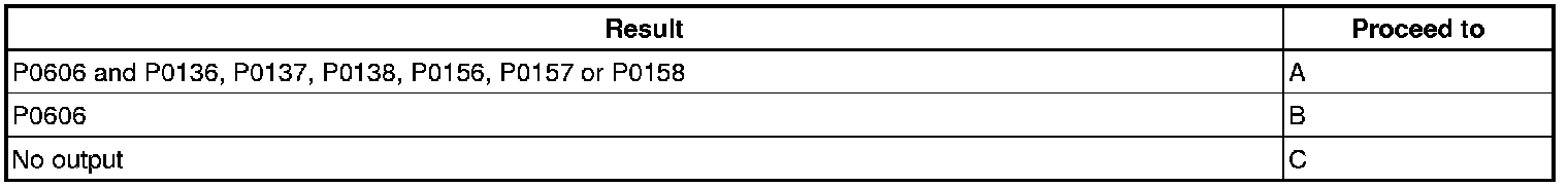- If DTC P0606 and P0136, P0137, P0138, P0156, P0157 or P0158 are output, the output voltage of the heated oxygen sensor may remain close to 0 V or become high (around 1 V or more).