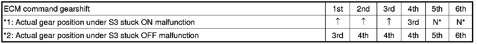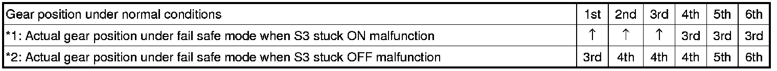 If any malfunction is detected, the ECM changes into the fail-safe mode to shift into the gear positions as shown in the table below.