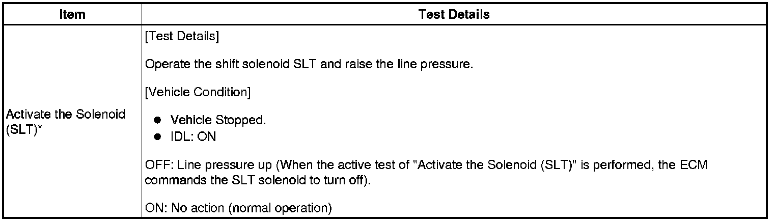 *: "Activate the Solenoid (SLT)" in the Active Test is performed to check the line pressure changes by connecting the SST to the automatic transmission, which is used in the HYDRAULIC TEST Hydraulic Test as well.