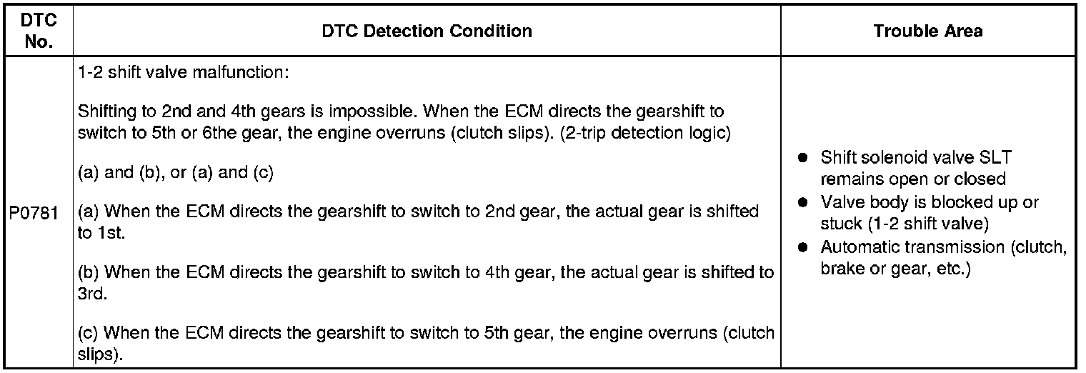 DTC P0781 - 1-2 Shift (1-2 Shift Valve)