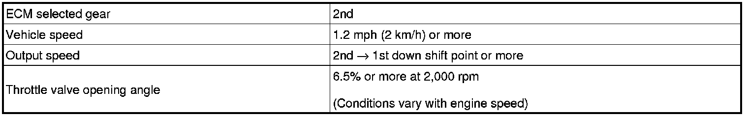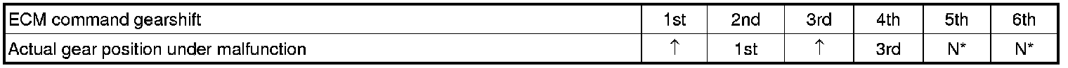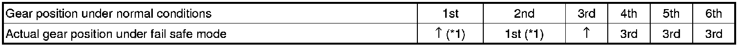 If any malfunction is detected, the ECM changes into the fail-safe mode to shift into the gear positions as shown in the table below.