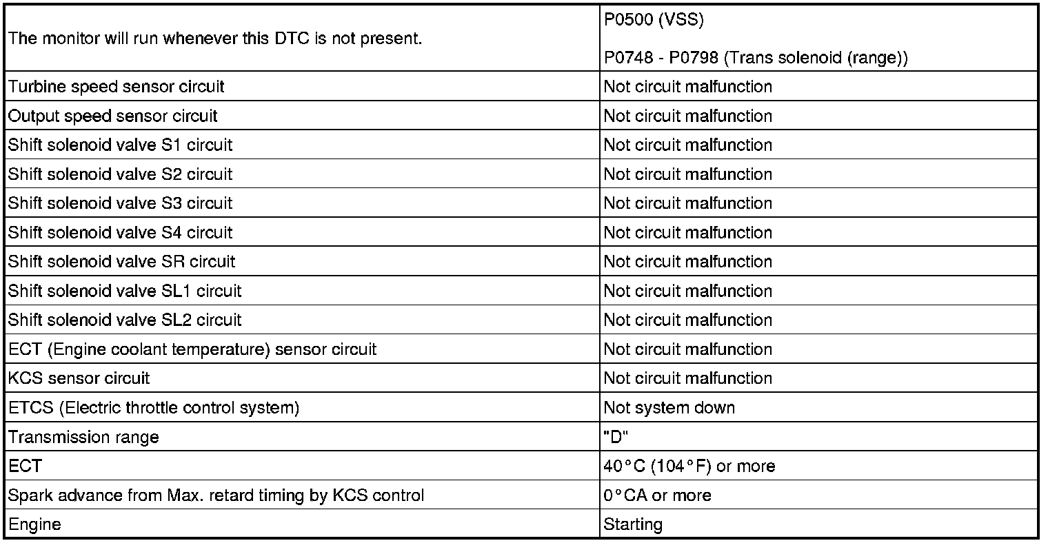 (a) Clear the DTC, and check DTC again after conducting the "MONITOR DRIVE PATTERN FOR ECT TEST" Monitors, Trips, Drive Cycles and Readiness Codes.