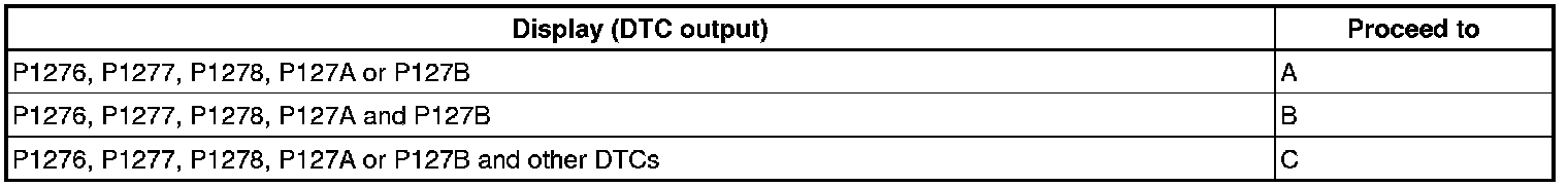 1. CHECK ANY OTHER DTCS OUTPUT (IN ADDITION TO DTC P1276, P1277,P1278,P1279, P127A,OR P127B)