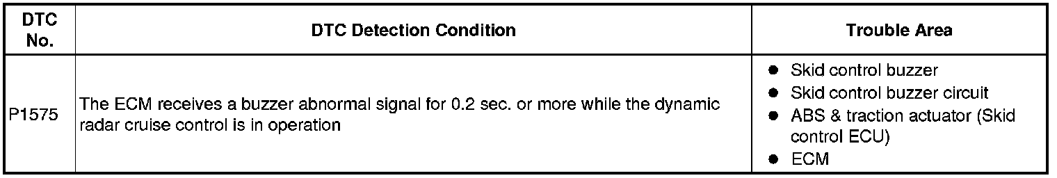 CRUISE CONTROL: DYNAMIC RADAR CRUISE CONTROL SYSTEM: P1575: Warning Buzzer Malfunction