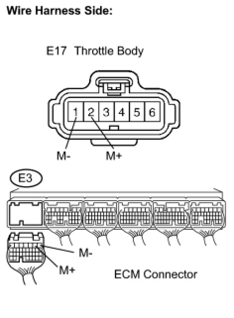 2. CHECK HARNESS AND CONNECTOR (THROTTLE CONTROL MOTOR - ECM)