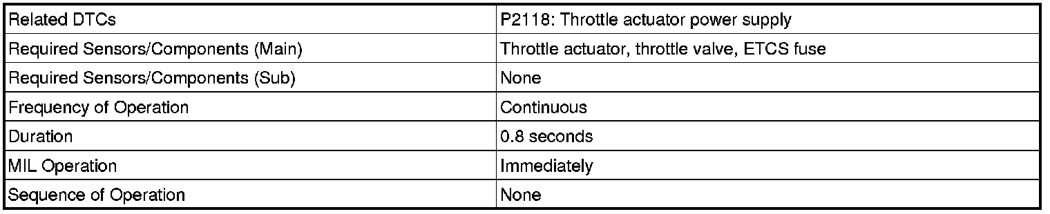 2GR-FSE ENGINE CONTROL SYSTEM: SFI SYSTEM: P2118: Throttle Actuator Control Motor Current Range / Performance