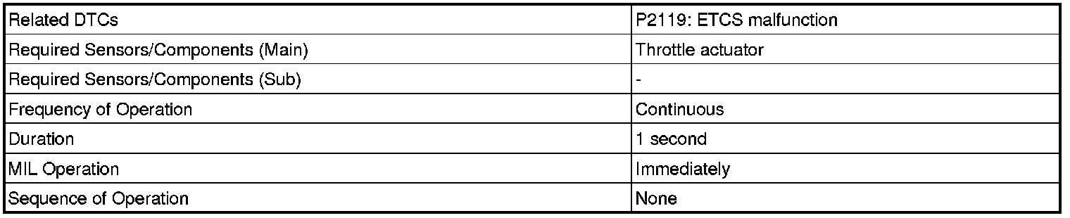 2GR-FSE ENGINE CONTROL SYSTEM: SFI SYSTEM: P2119: Throttle Actuator Control Throttle Body Range / Performance