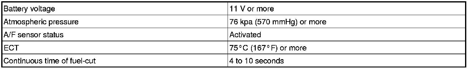 - The ECM stops fuel injection (fuel cut) during engine deceleration. This causes a lean condition and results in a momentary increase in the A/F sensor output voltage.