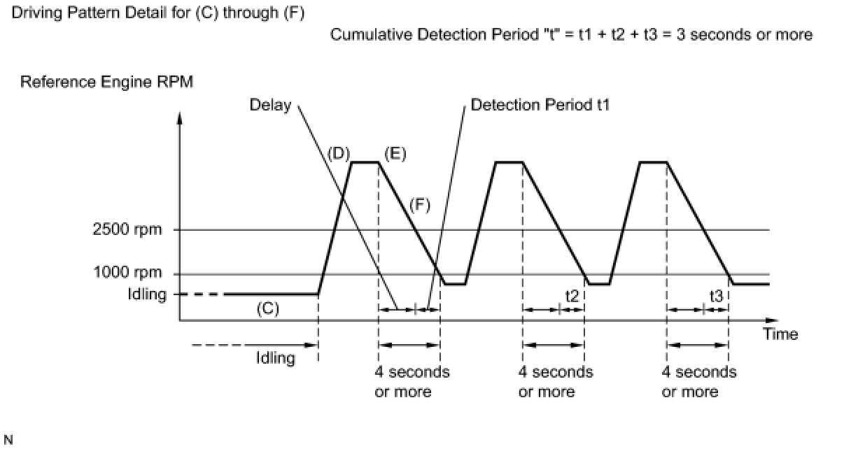 This confirmation driving pattern is used in steps 2, 4, 7, 17 and 21 of the following diagnostic troubleshooting procedure when using Techstream.