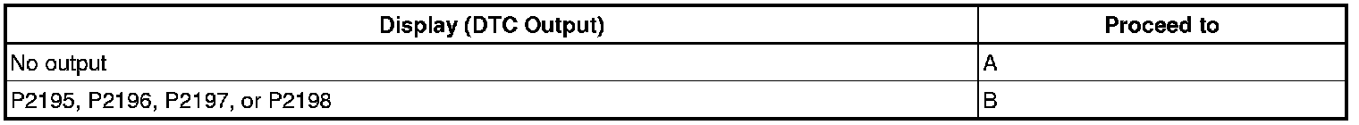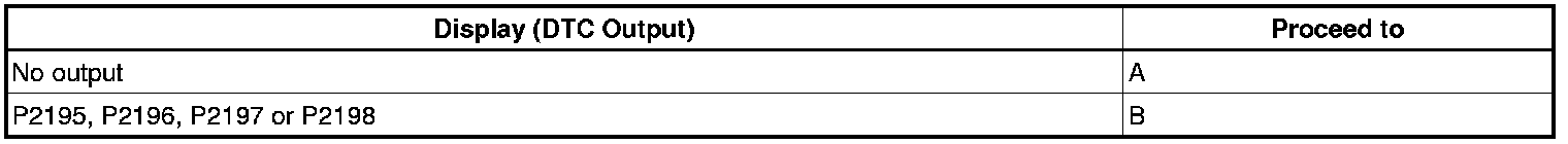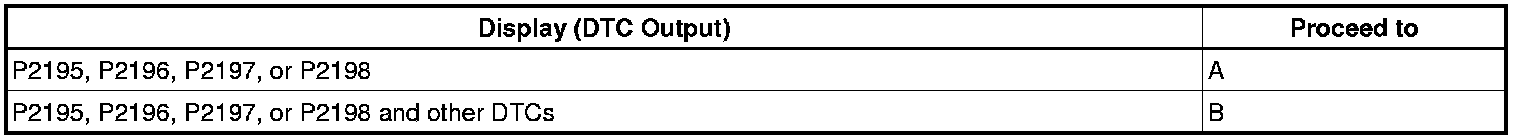 If any DTCs other than P2195, P2196, P2197 or P2198 are output, troubleshoot those DTCs first.