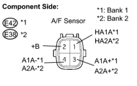 - The A/F sensor is a current output element; therefore, the current is converted into a voltage inside the ECM. Measuring the voltage at the connectors of the A/F sensor or ECM will show a constant voltage result.