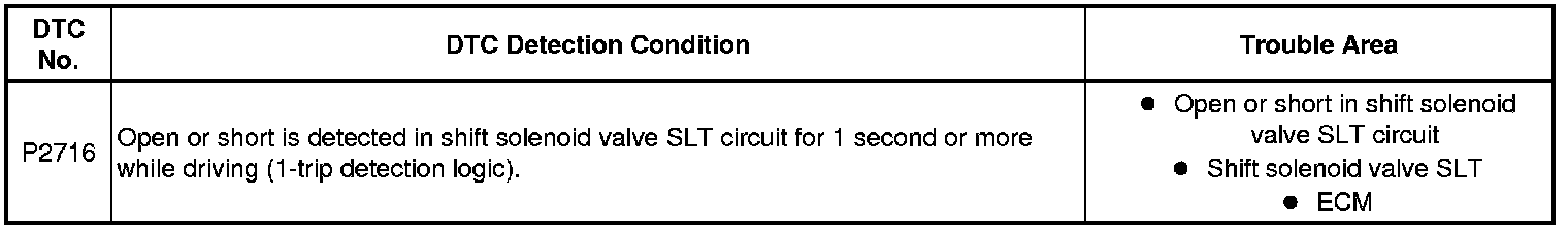 A760E AUTOMATIC TRANSMISSION: AUTOMATIC TRANSMISSION SYSTEM: P2716: Pressure Control Solenoid "D" Electrical (Shift Solenoid Valve SLT)