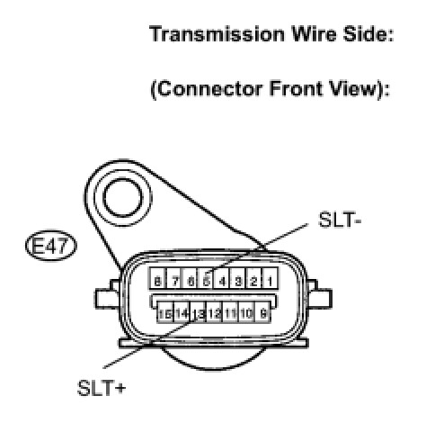 When an open or short in the linear solenoid valve (SLT) circuit is detected, the ECM interprets this as a fault. The ECM will turn on the MIL and store the DTC.