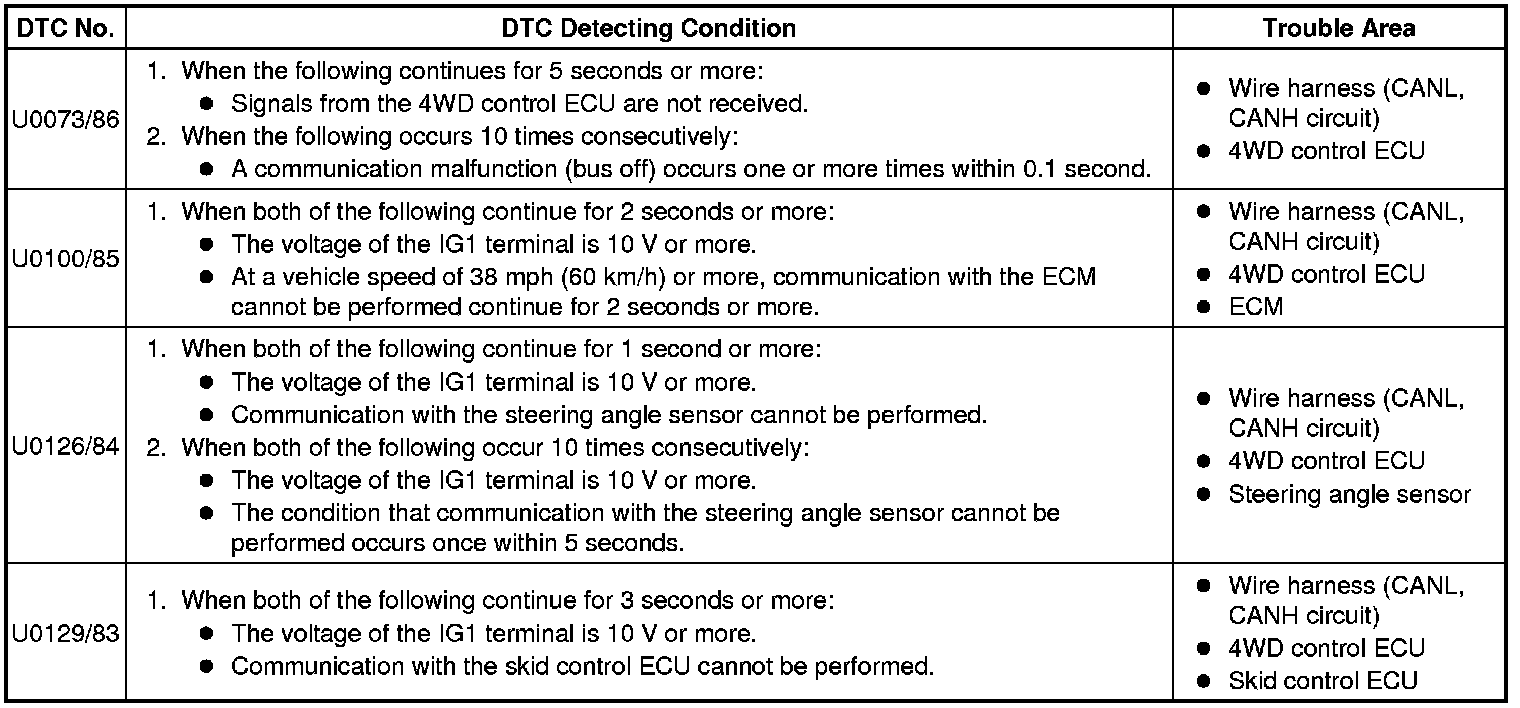 UF1AE TRANSFER: FOUR WHEEL DRIVE CONTROL SYSTEM: U0073/86: Control Module Communication Bus OFF