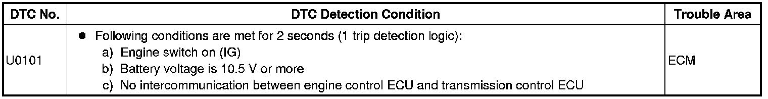 2GR-FSE ENGINE CONTROL SYSTEM: SFI SYSTEM: U0101: Lost Communication with TCM