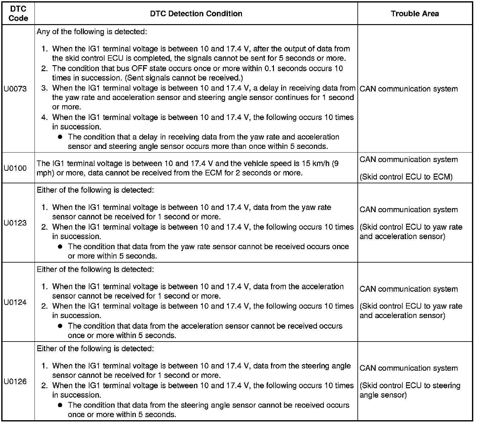 The CAN communication system must be normal when performing troubleshooting for each sensor DTC (for ABS and/or VSC system).
