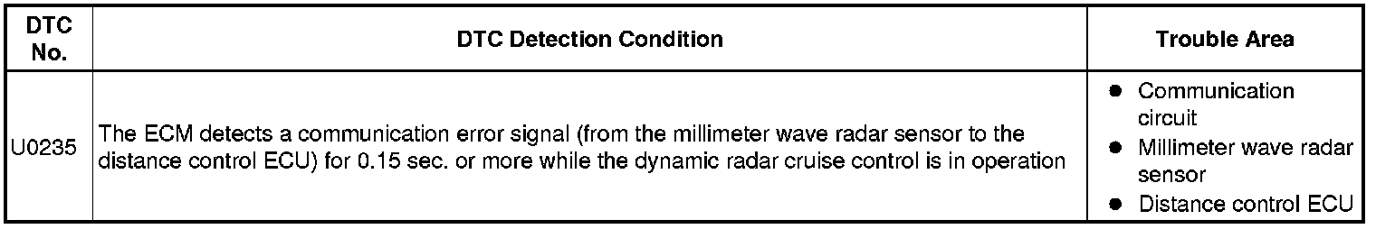 DTC U0235 - Lost Communication with Cruise Control Front Distance Range Sensor