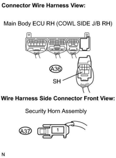 (a) Disconnect the A36 ECU connector and the A37 horn connector.