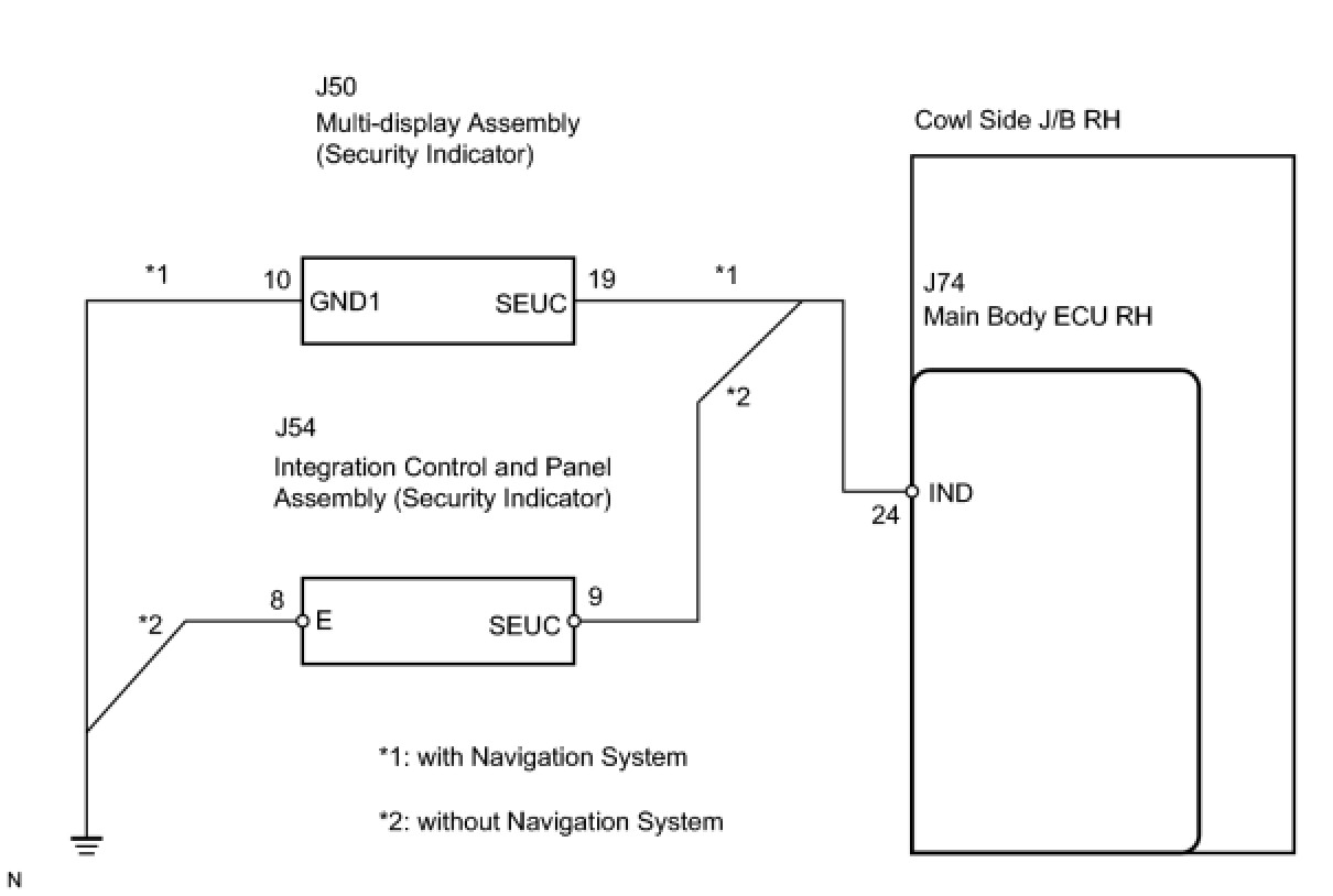 The main body ECU RH causes the security indicator to light up or blink only during the arming preparation state and alarm sounding state.