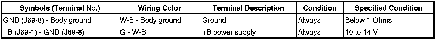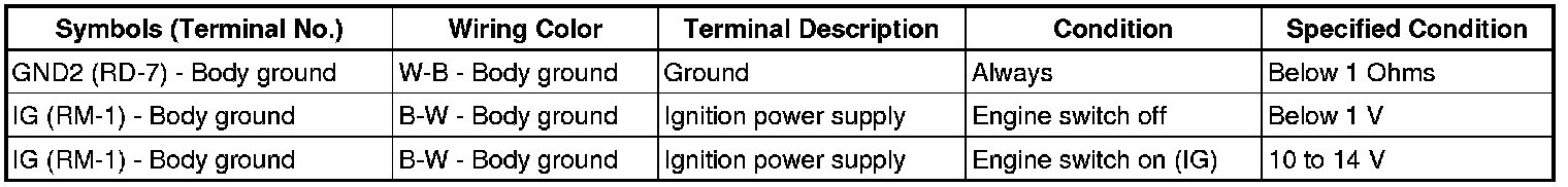 - If the result is not as specified, the main body ECU RH (cowl side J/B RH) may have a malfunction.