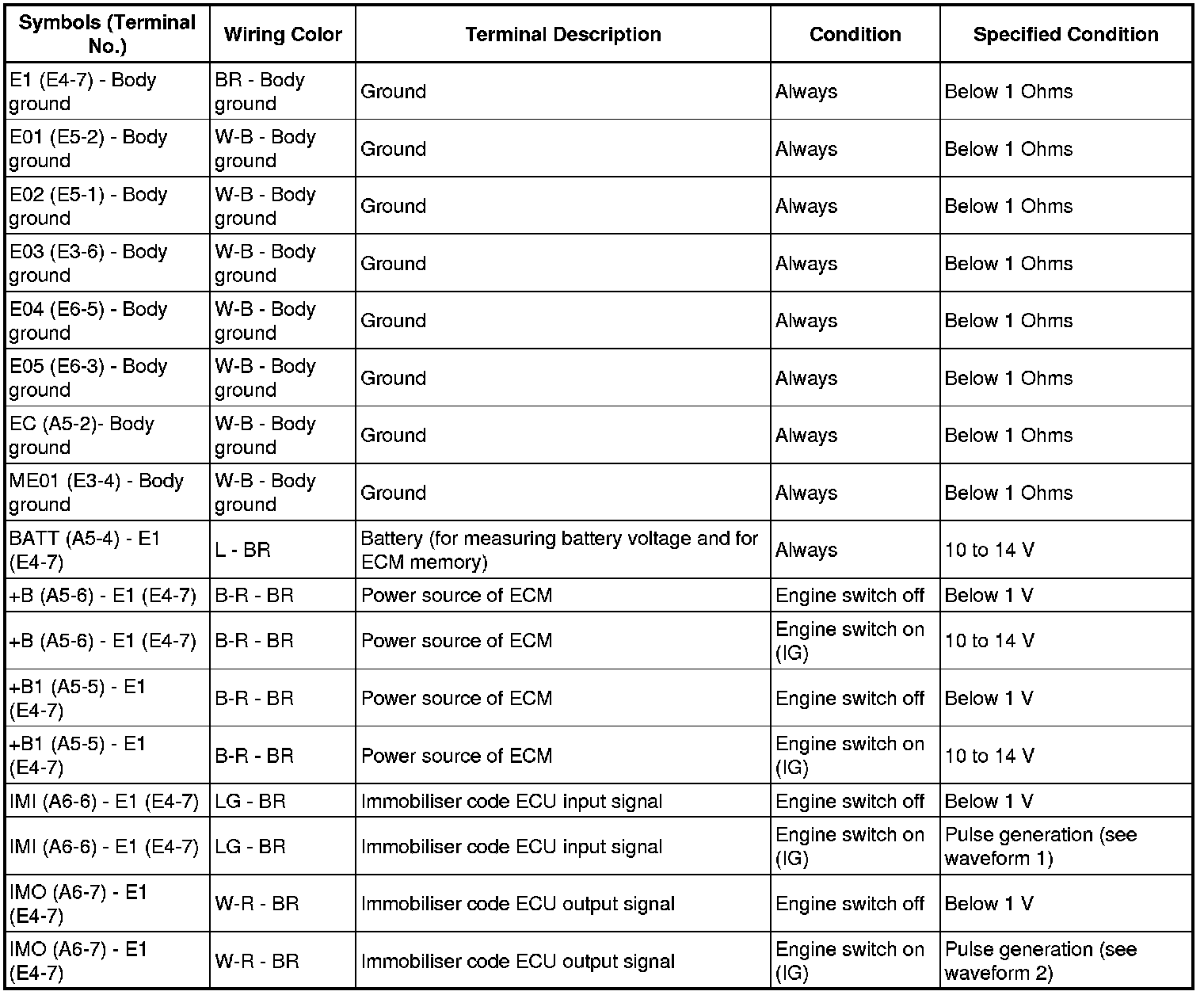 ENGINE IMMOBILIZER: ENGINE IMMOBILIZER SYSTEM: TERMINALS OF ECU