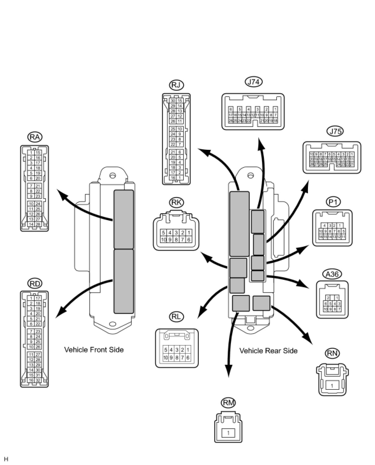 (a) Disconnect the main body ECU RH (cowl side J/B RH) connectors.