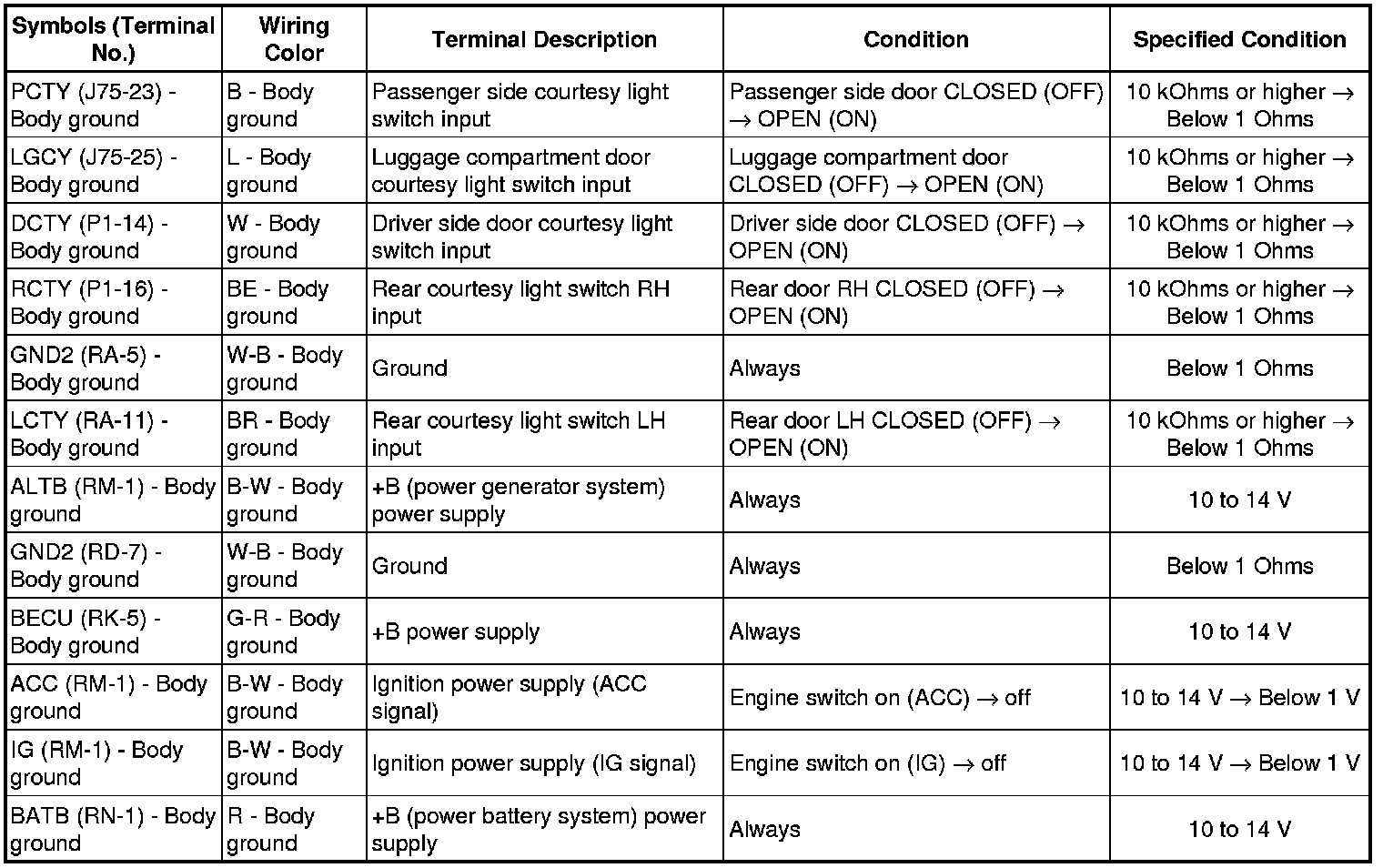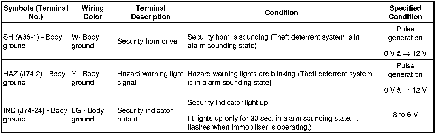 THEFT DETERRENT: THEFT DETERRENT SYSTEM: TERMINALS OF ECU