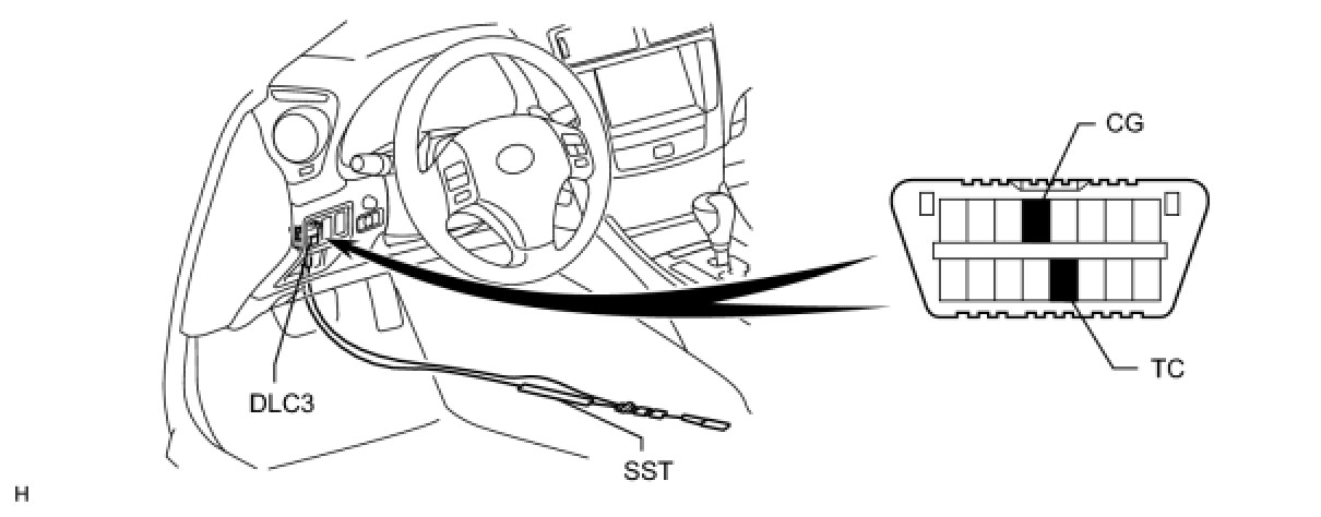 (1) Using SST, connect terminals TC and CG of the DLC3.