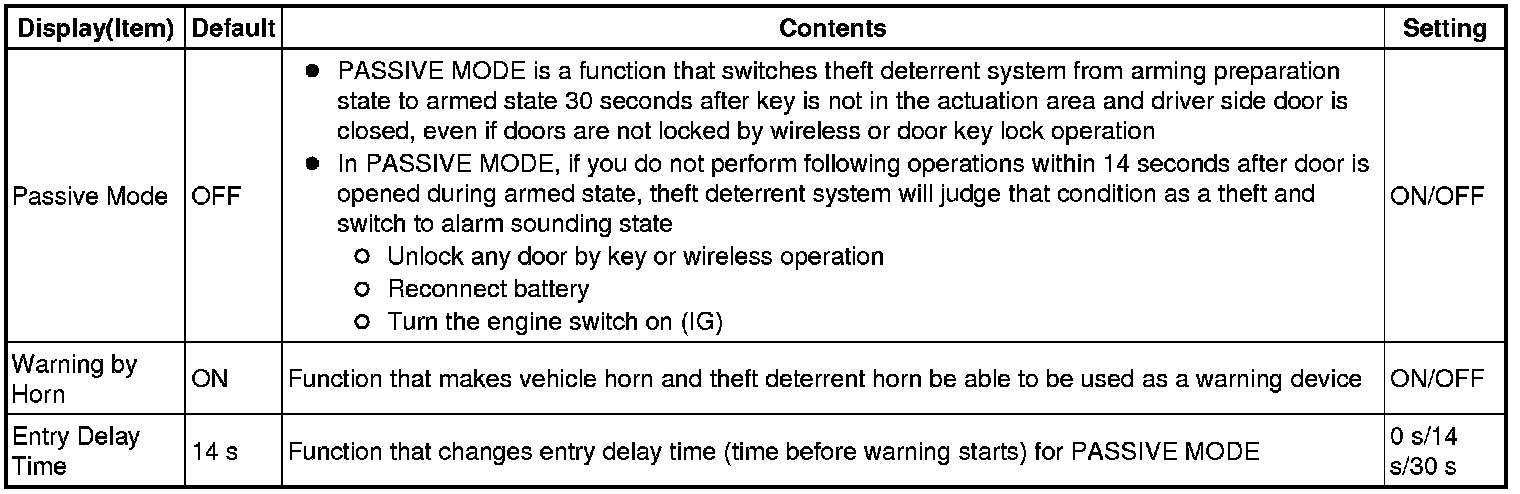 THEFT DETERRENT: THEFT DETERRENT SYSTEM: CUSTOMIZE PARAMETERS