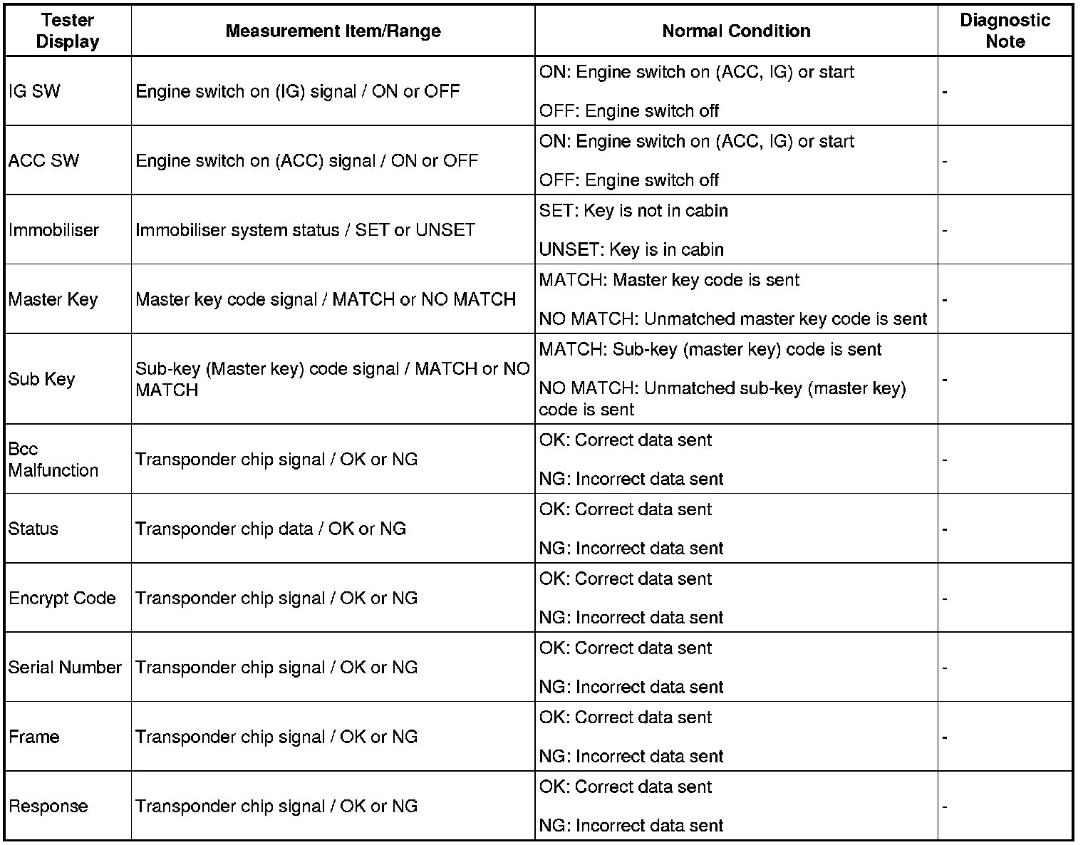 ENGINE IMMOBILIZER: ENGINE IMMOBILIZER SYSTEM: DATA LIST / ACTIVE TEST