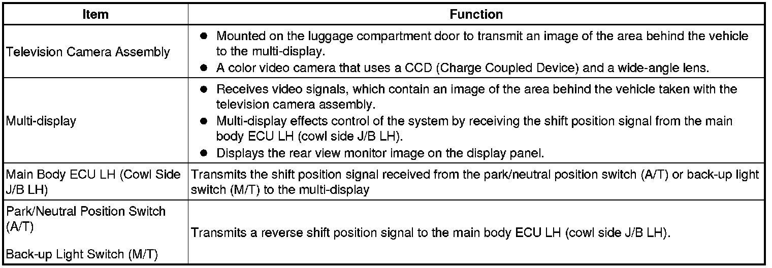 (a) To assist the driver with parking the vehicle by displaying an image of the area behind the vehicle, this system has a television camera mounted on the luggage compartment door. The system displays the image on the multi-display.