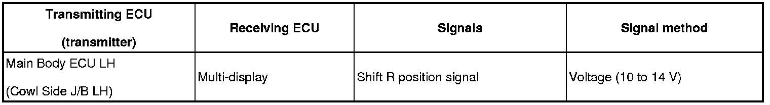 (a) The main body ECU LH (cowl side J/B LH) inputs the R position signal from the park/neutral position switch (A/T) or back-up light switch (M/T) to the multi-display when the shift lever is moved to the R position. After receiving the R position signal, the multi-display switches from the navigation system to the rear view monitor system.