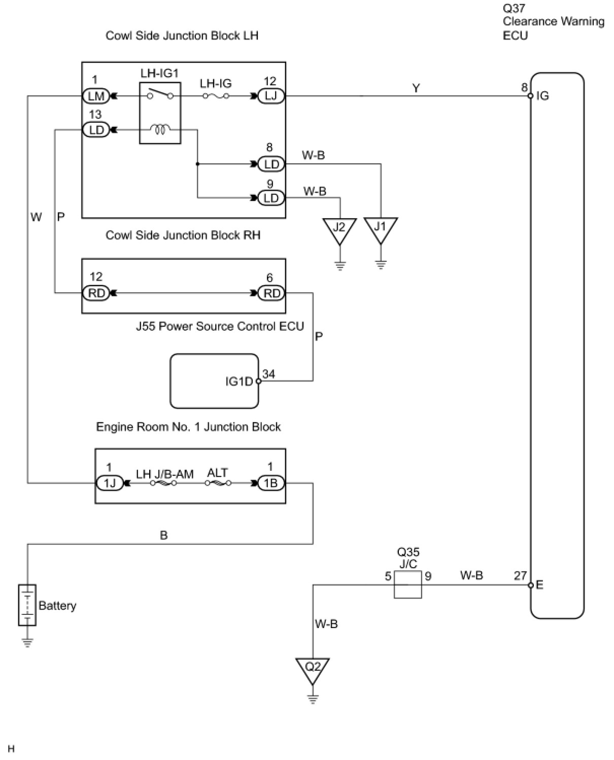 PARK ASSIST / MONITORING: INTUITIVE PARKING ASSIST SYSTEM: Clearance Warning ECU Power Source Circuit