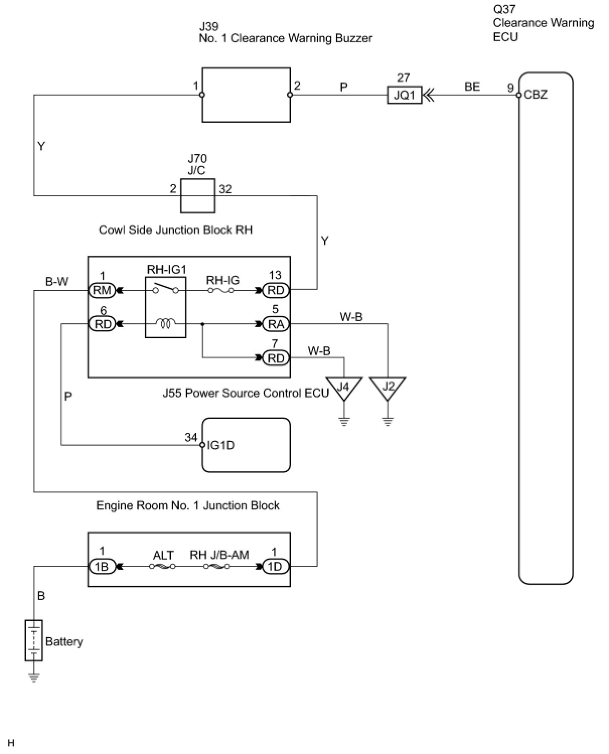 The clearance warning buzzer does not sound without battery voltage applied because the buzzer is a separately-excited type.