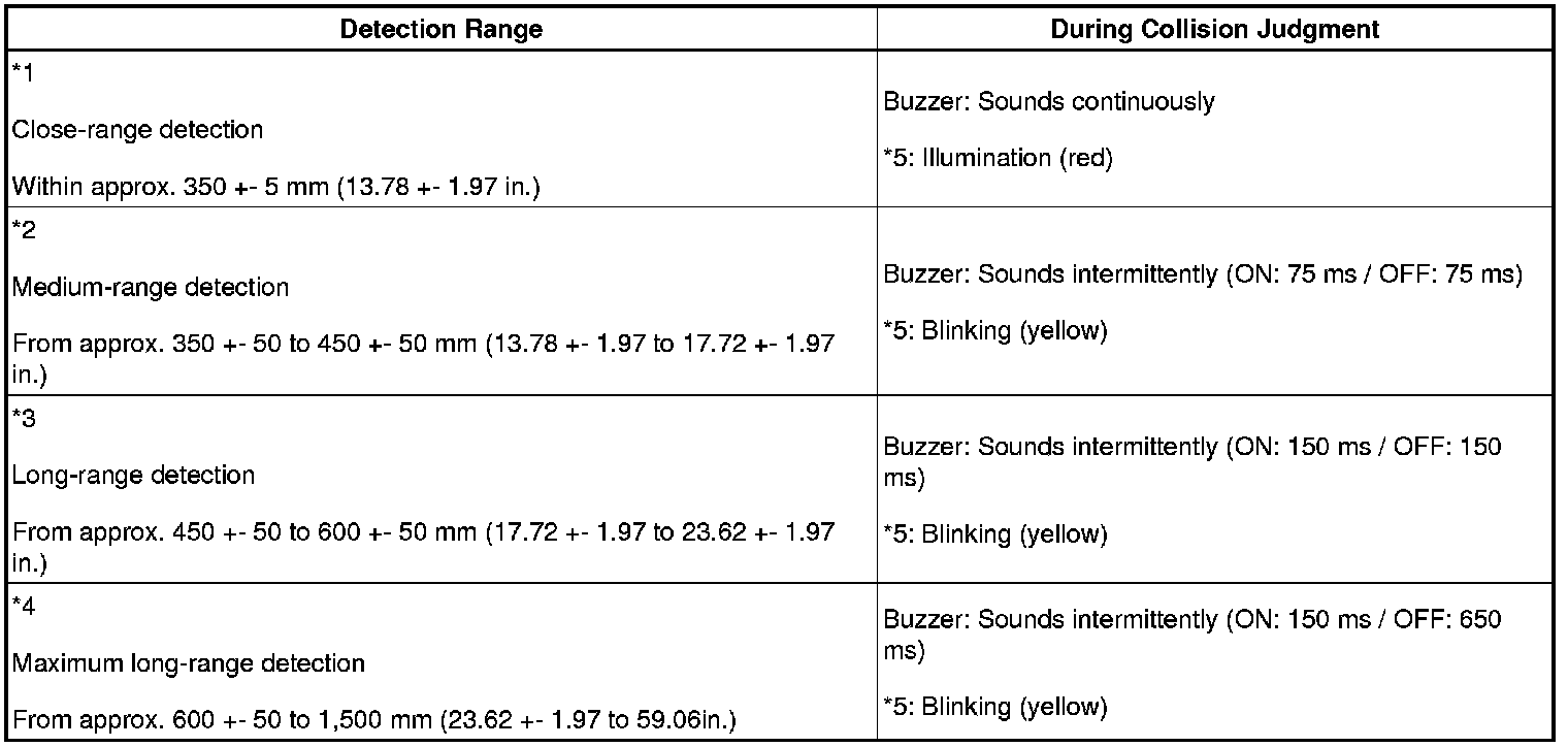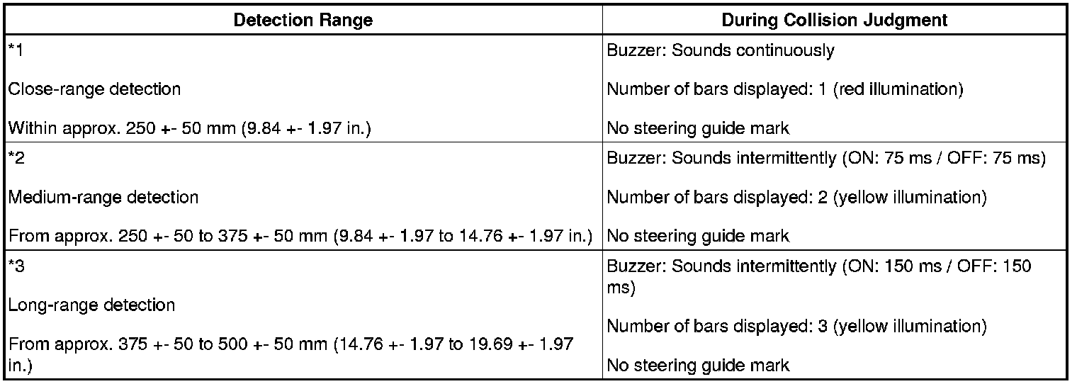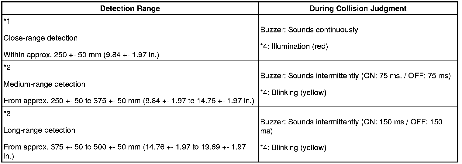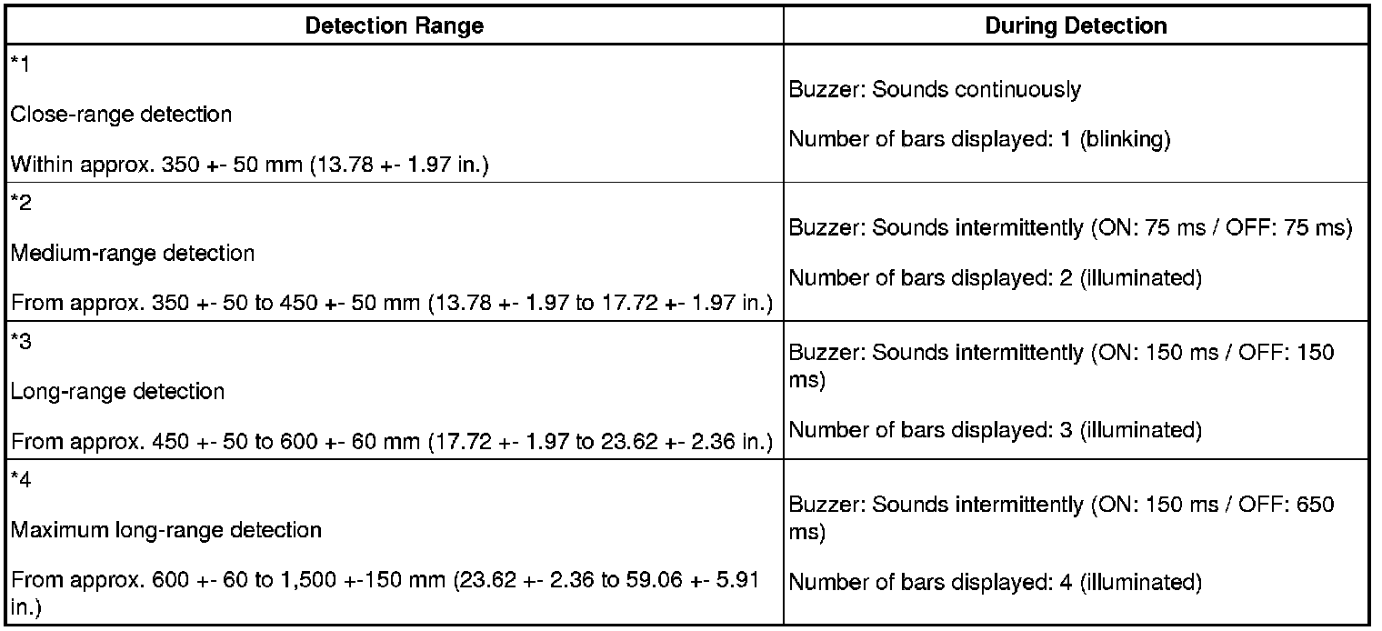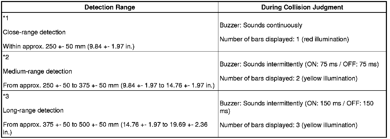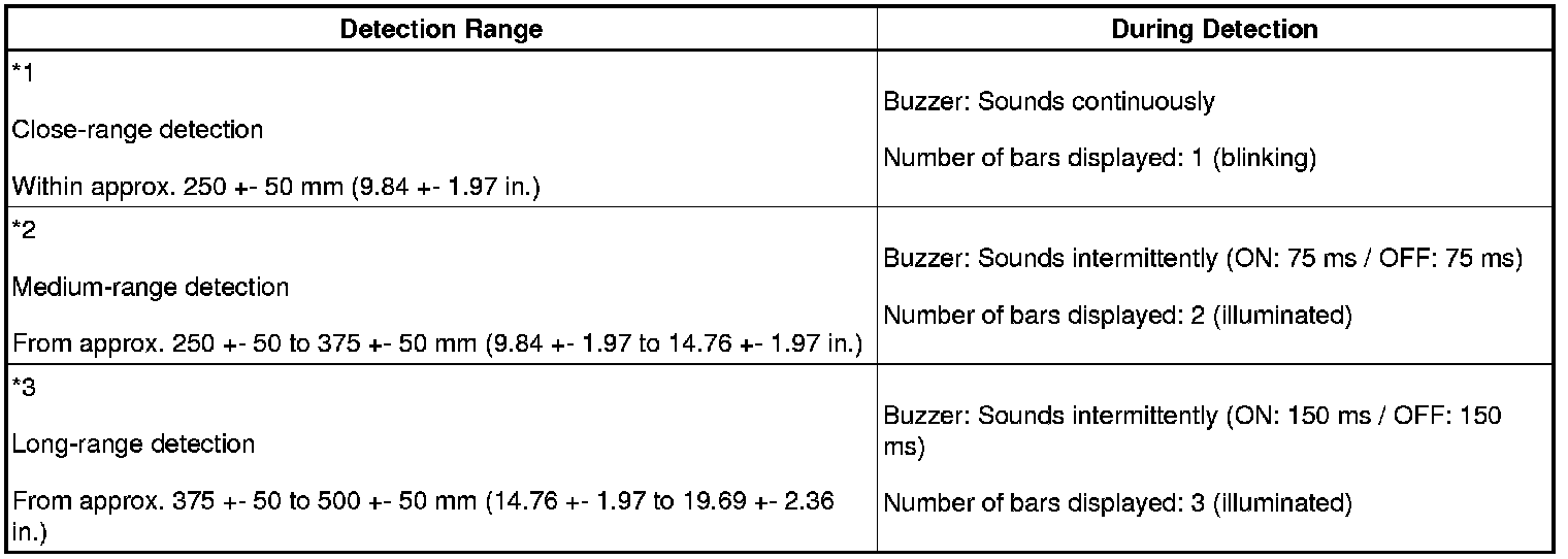 (d) When the ultrasonic sensors (front clearance sonar) have detected an obstacle, check the displays and buzzer sounds.