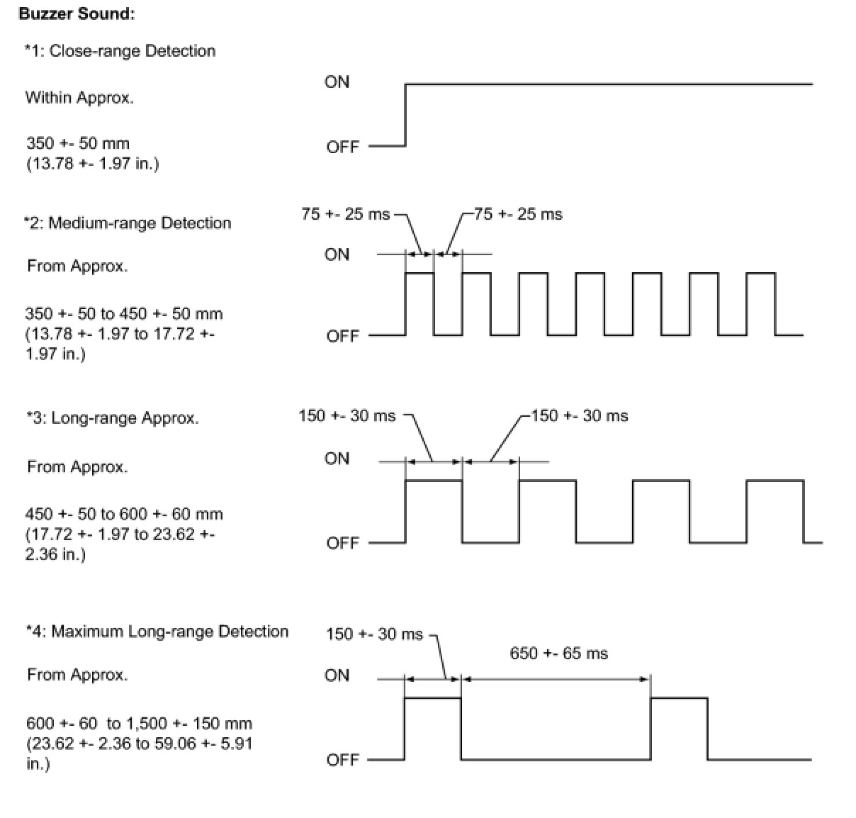 - If the clearance sonar main switch is ON and the engine switch is turned on (IG), the buzzer does not sound.