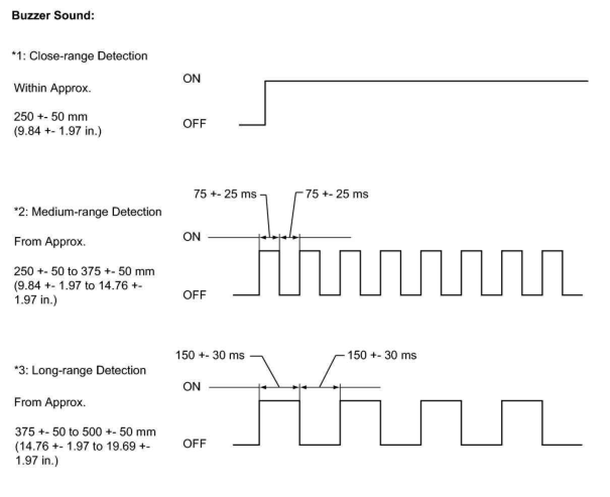 (e) When the ultrasonic sensors (back sonar) have detected an obstacle, check the display and buzzer sounds.